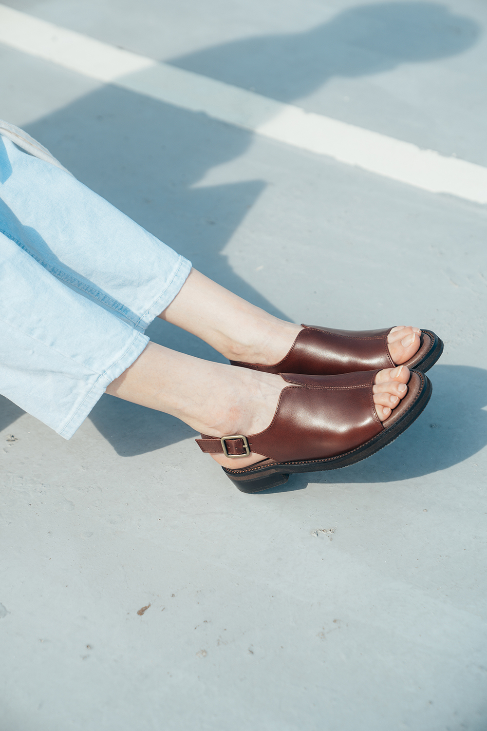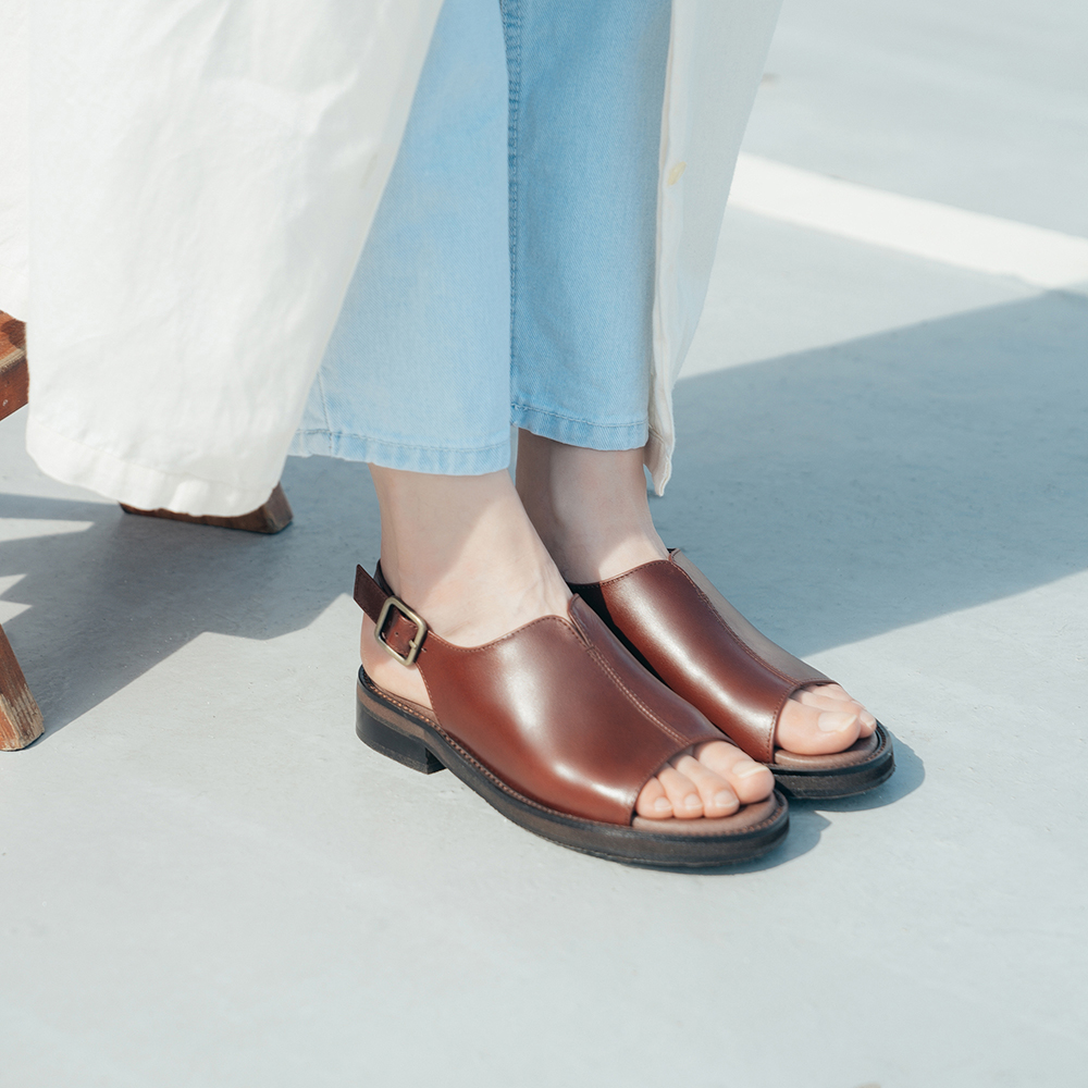 【許許兒xLafille 樂菲真皮手工鞋】中分女孩涼鞋 _ 酒紅